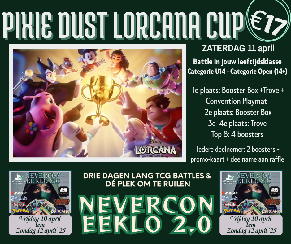 Van vrijdag 10 tot en met zondag 12 april 2026 vindt Nevercon 2 plaats in Eeklo: een volledig weekend vol TCG-toernooien, battles en een bruisende ruilbeurs.